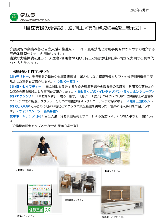 「トップ介護メーカ5社のコラボレーションの体験展示会」 NEW