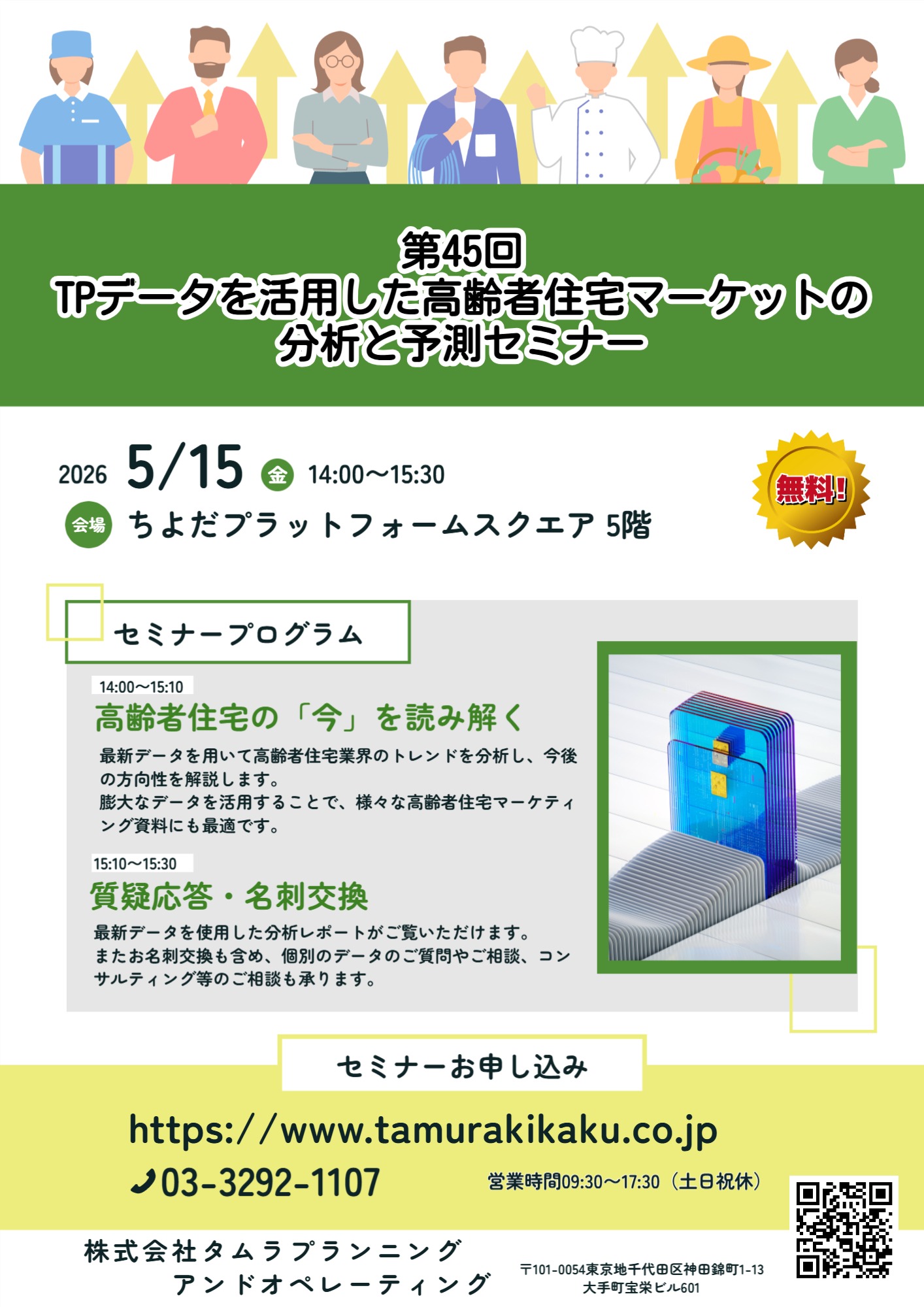| セミナーの趣旨・内容 | 高齢者住宅・居宅サービスのデータベースとコンサルティングを提供するタムラプランニングアンドオペレーティングでは、4月末に、TPデータ・サービス「高齢者住宅データ」2026年度上半期号を発行します。 当社では、これを受けまして、「高齢者住宅データ」の最新データを元に、高齢者住宅業界の最新動向を解説するセミナーを開催します。 |
