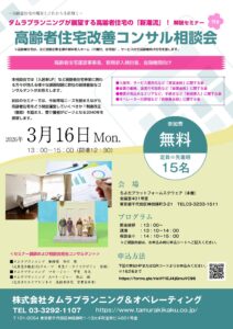 〔3月16日開催〕セミナー付き高齢者住宅改善コンサル相談会